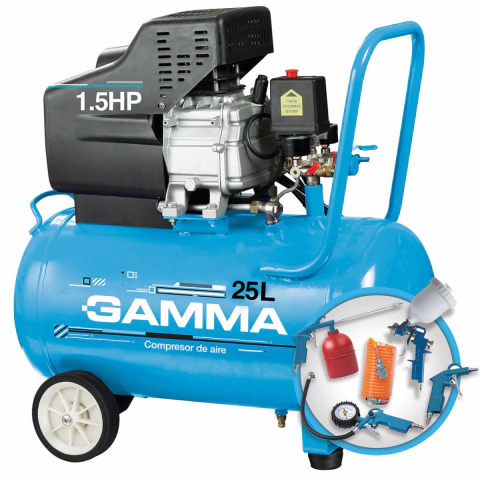 Potente y eficiente, el Compresor de Aire Eléctrico Gamma es la herramienta ideal para tus proyectos de bricolaje y mantenimiento. Con una potencia de 1.5 HP y una alimentación de 220 VCA – 50Hz, este compresor garantiza un rendimiento excepcional.