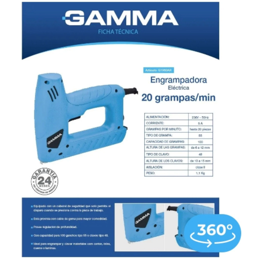 La Engrampadora Tapizar Clavadora Manual Gamma G1960AR es la herramienta ideal para quienes buscan un rendimiento eficiente en proyectos de tapicería y manualidades. Con un diseño ergonómico y un atractivo color celeste, esta engrampadora manual combina funcionalidad y estilo, facilitando su uso en diversas aplicaciones.
